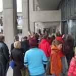 Trotz strömenden Regens haben sich 120 Personen vor dem neuen Rathaus eingefunden, die gegen die Stadtwache unterschrieben haben: